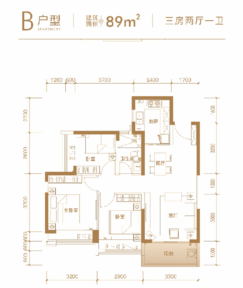 约89㎡3房2厅1卫