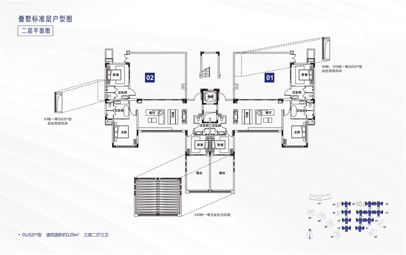 二楼129㎡带南向露台北向花园露台?花园可拓展面积达80㎡三套房设计!客卧?露台的完美搭配客卧?花园的无缝衔接可满足一家多口的度假居住需求