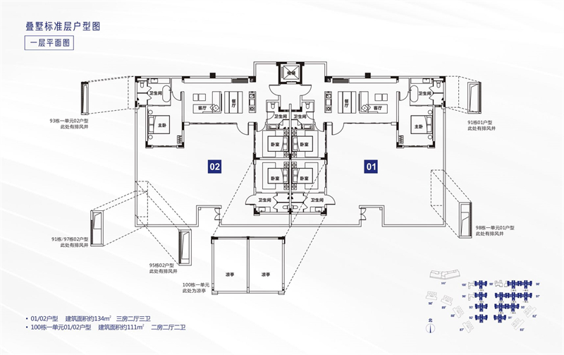 低密双拼叠墅主推面积段为111~147㎡/层高3.3