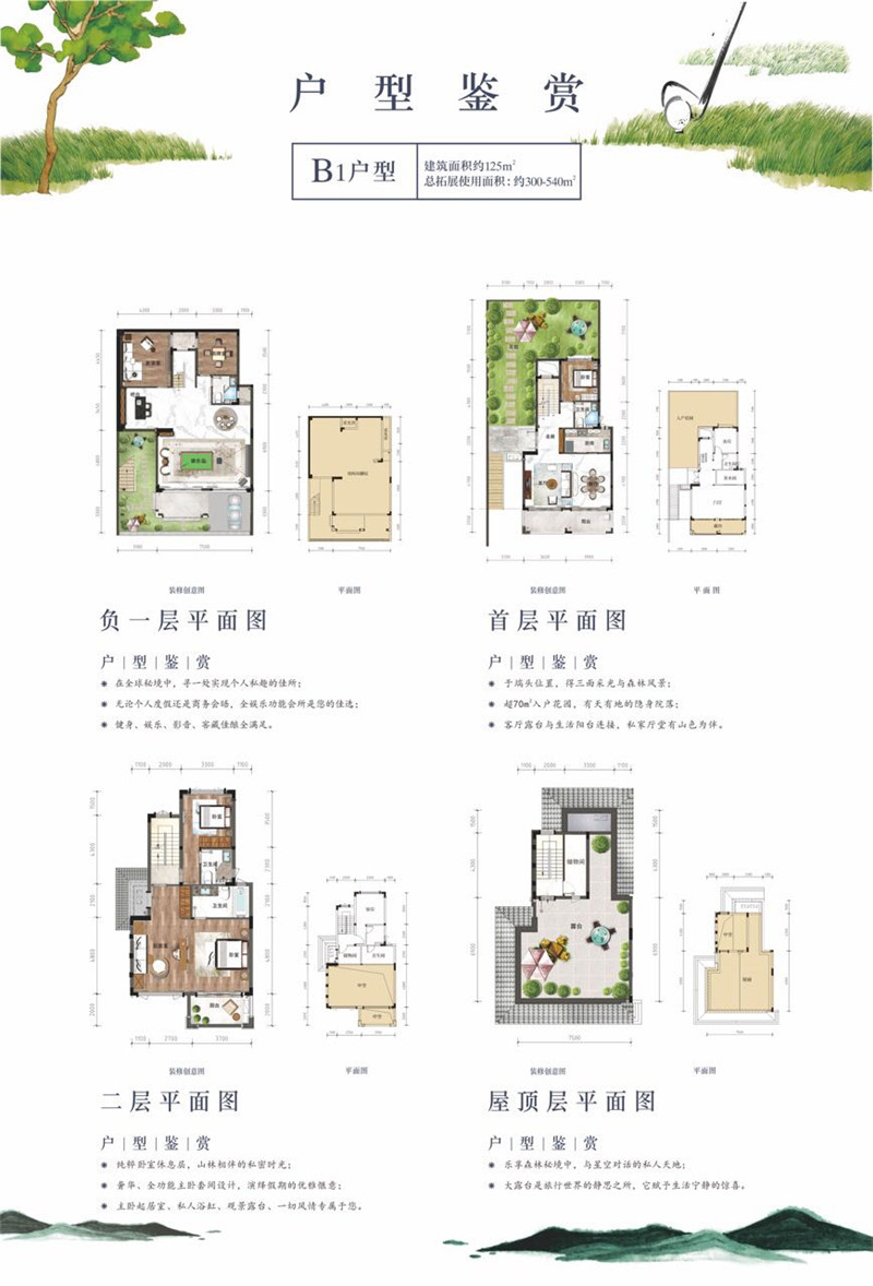 2、惠林温泉125㎡端头位别墅实用面积约380㎡(赠送约255㎡),可作5房3厅4卫。