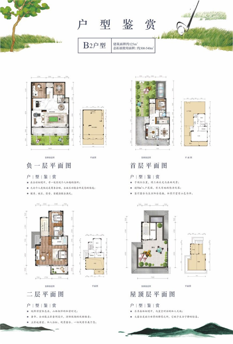 阳光负一层约130㎡+花园50~200㎡(次卧x2+影音室+棋牌室+水吧)