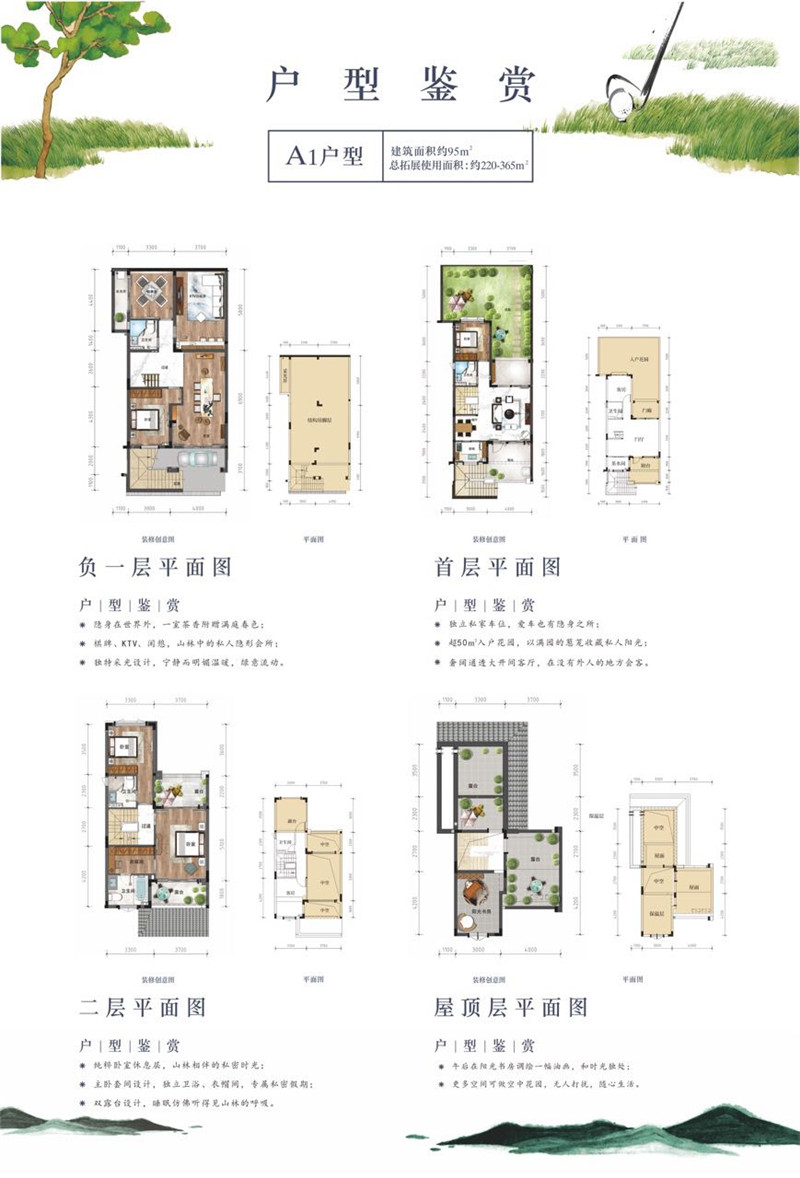 1、惠林温泉95㎡中间位别墅实用面积约310㎡(赠送约215㎡),可作7房2厅4卫。