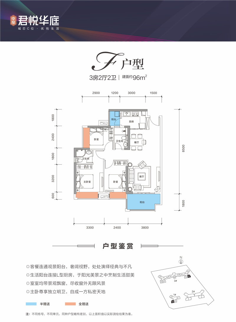 • 中投君悦华庭 9 6 ㎡-3房2厅2卫-96.00㎡
