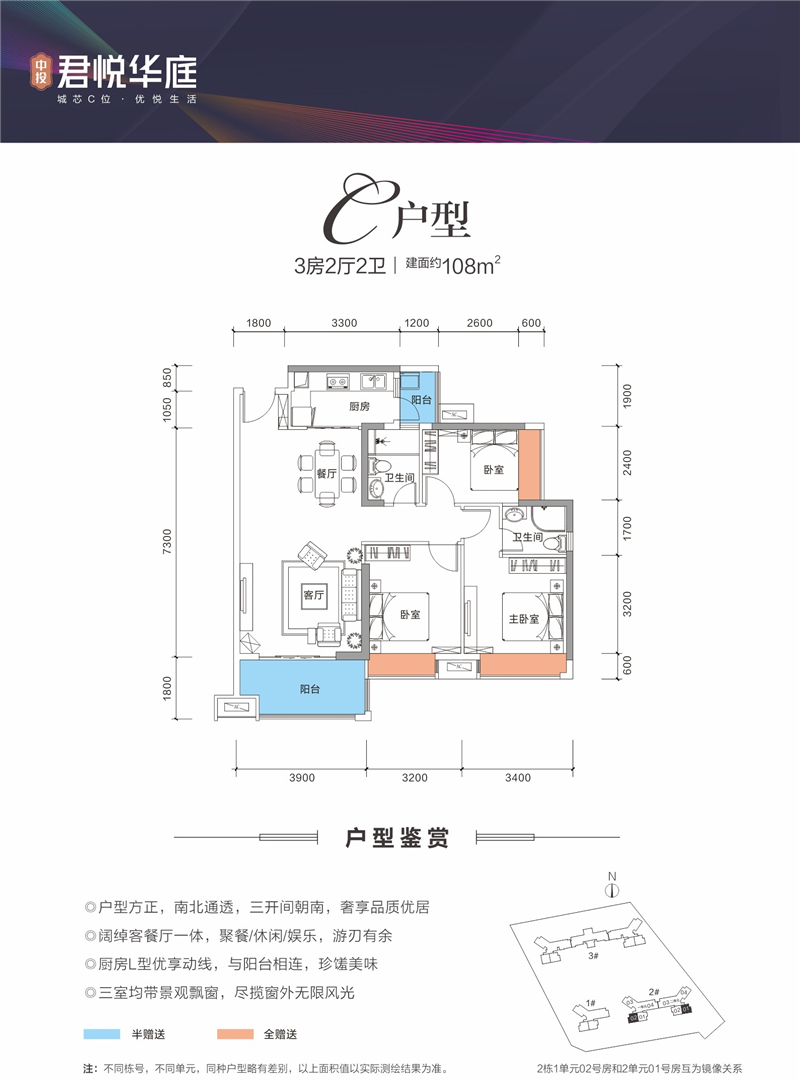 • 中投君悦华庭 1 0 8 ㎡-3房2厅2卫-108.00㎡