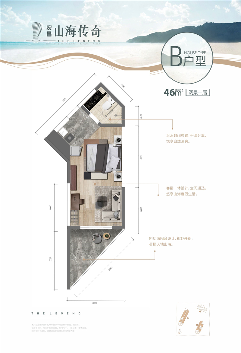• 宏昌山海传奇 4 6 ㎡-1房1厅1卫-46.00㎡