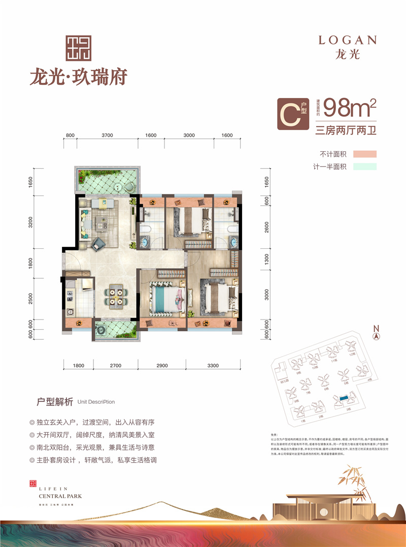 • 龙光玖瑞府 9 8 ㎡-3房2厅2卫-98.00㎡