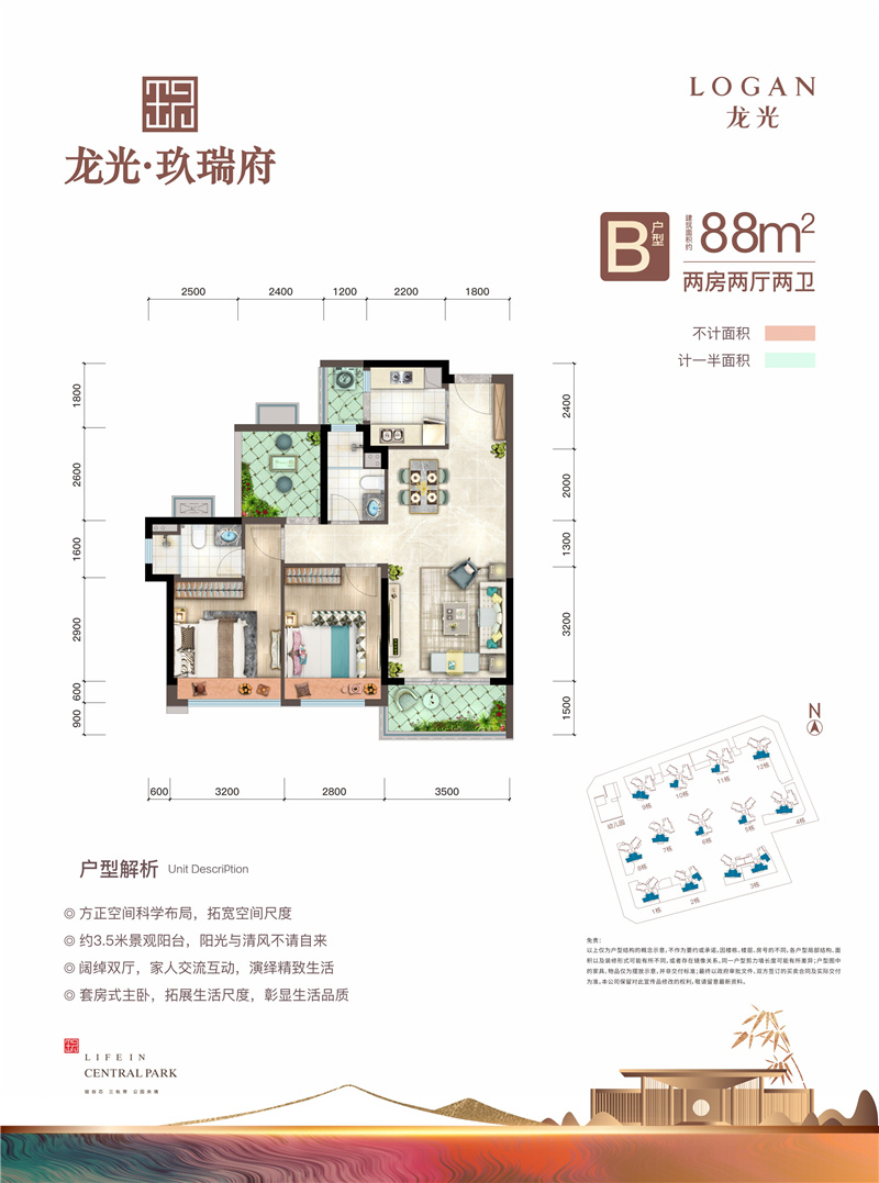 • 龙光玖瑞府 8 8 ㎡-3房2厅2卫-88.00㎡