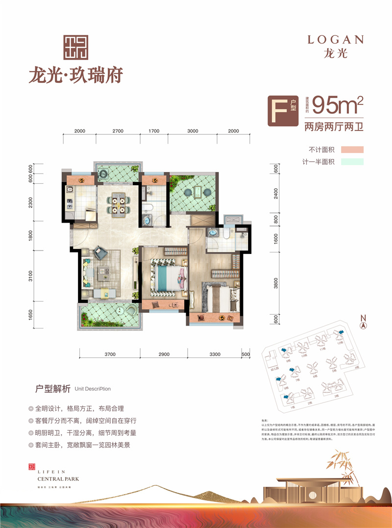 • 龙光玖瑞府 9 5 ㎡-3房2厅2卫-95.00㎡