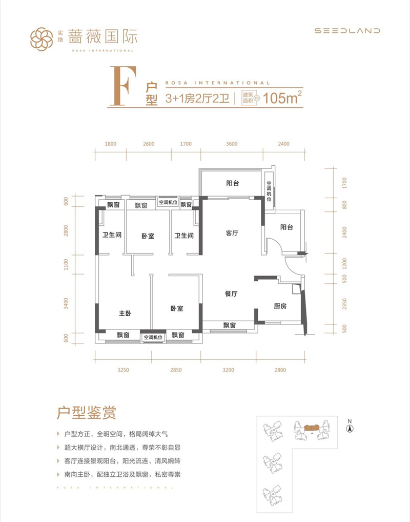 • 惠州实地蔷薇国际 1 0 5 ㎡-4房2厅2卫-105.00㎡