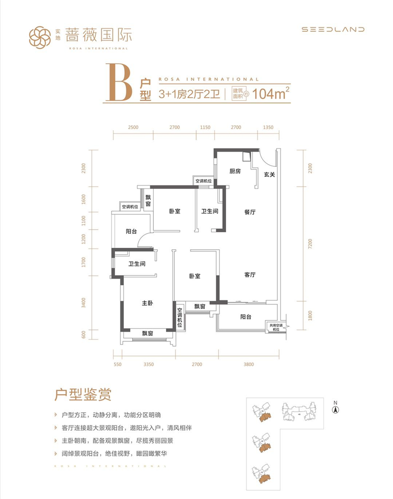 • 惠州实地蔷薇国际 1 0 4 ㎡-4房2厅2卫-104.00㎡