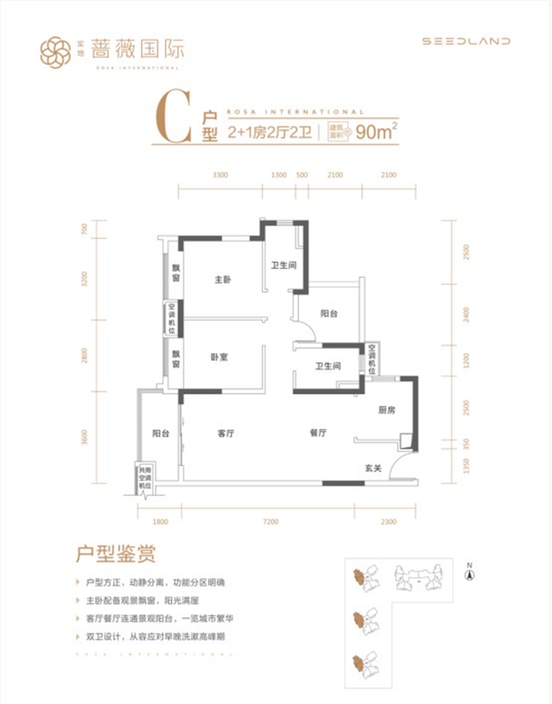 • 惠州实地蔷薇国际 9 0 ㎡-3房2厅2卫-90.00㎡
