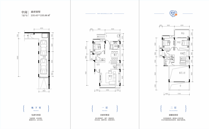 • 半岛1号 叠拼中间位别墅 235㎡-4房2厅3卫-235.00㎡