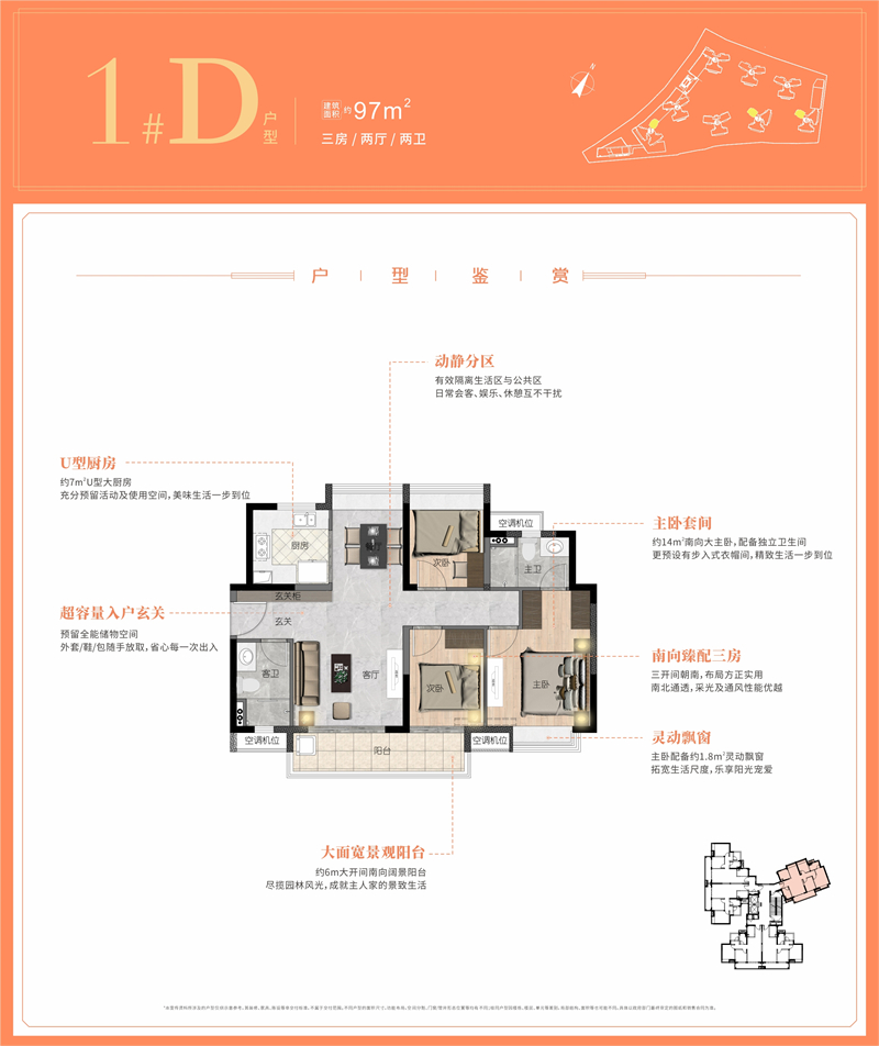 【产品】灵动户型布局 ,更多空间更多享法户型方正阔朗,三面宽朝南,揽无限景观入怀;匠筑灵动户型,适应不同家庭结构居住;7阔绰景观双阳台、入户花园、270°全景飘窗等,不同功能随心打造,收纳生活意趣,收藏生活美好。