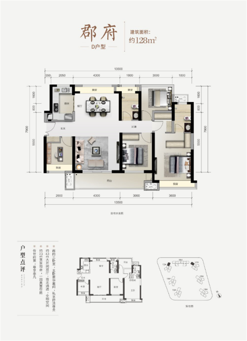 128㎡南北通四房,4.3m超大开间,7.3超宽大阳台