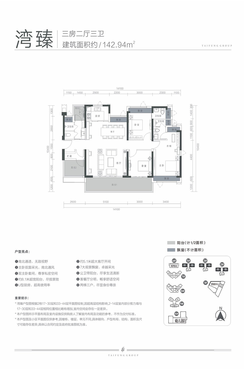• 泰丰千湾汇 1 4 2 平米-4房2厅2卫-142.00㎡
