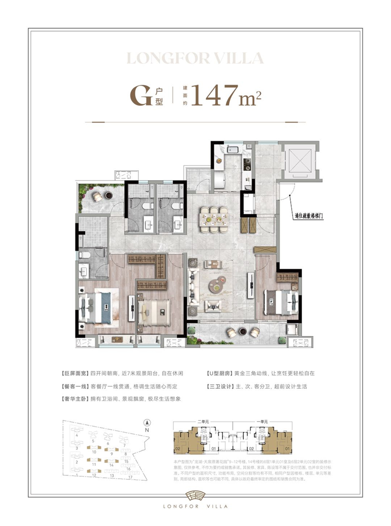 1、片区低密洋房2、一梯一户入户体验,私密性好,实用率高3、小区主景观轴位置,视野太阔4、南向大尺度,采光面绝佳