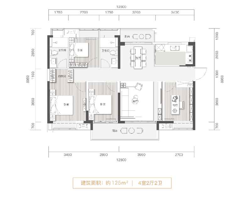 126m2【学府舒居】四房南北通,前后双阳台,全能舒居