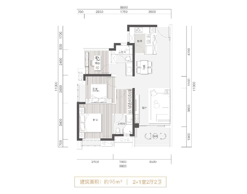 95m2【学知雅园】 2+1房两卫,逆天高拓户型