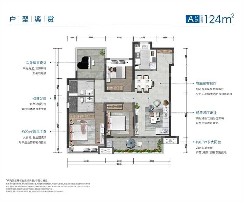 户型方正 | 动静分区 | 约20㎡主卧 | 约6.7m阳台