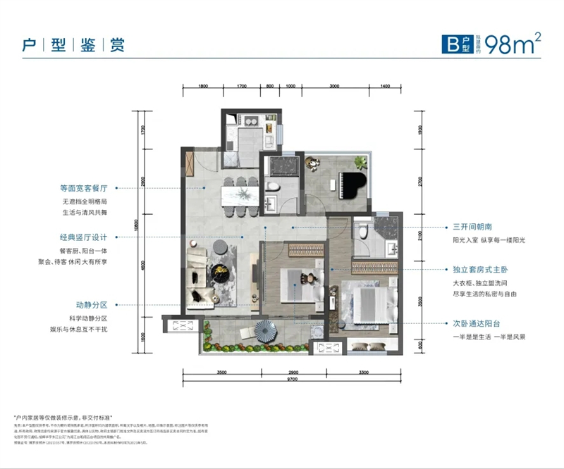 三开间朝南 | 动静分区 | 双面宽阳台 | 高拓空间