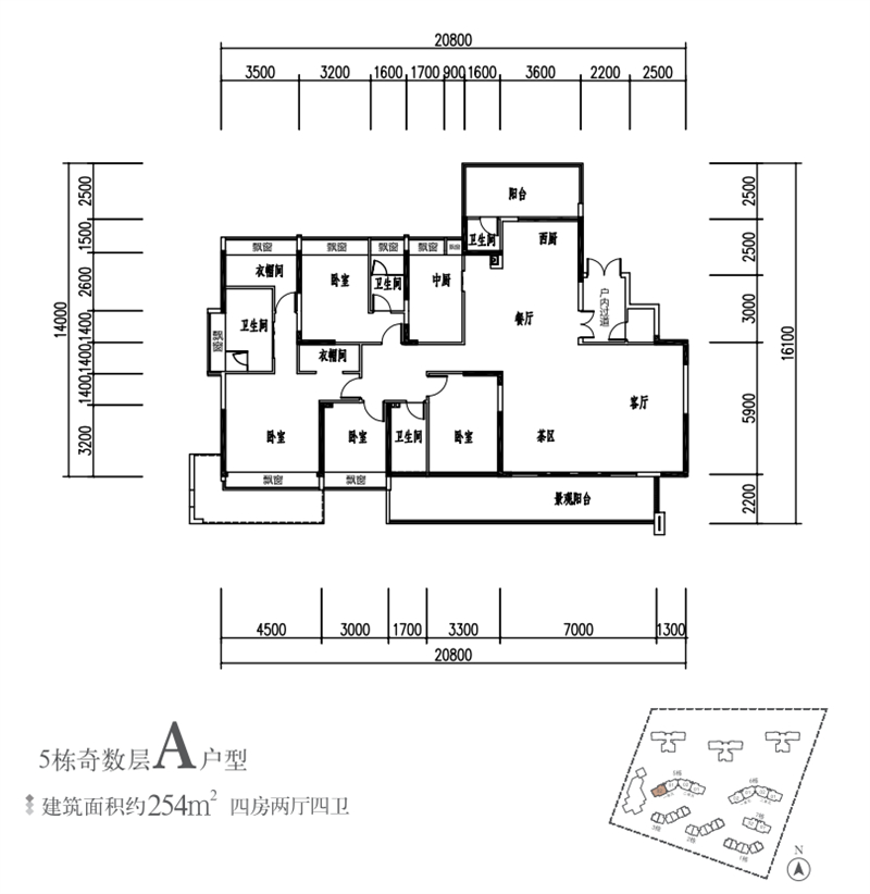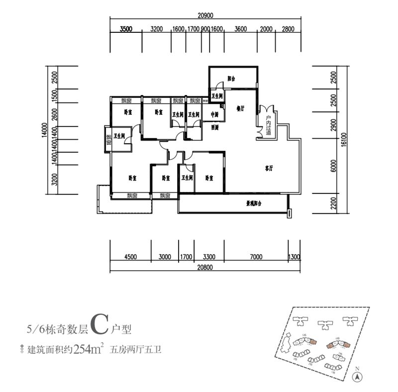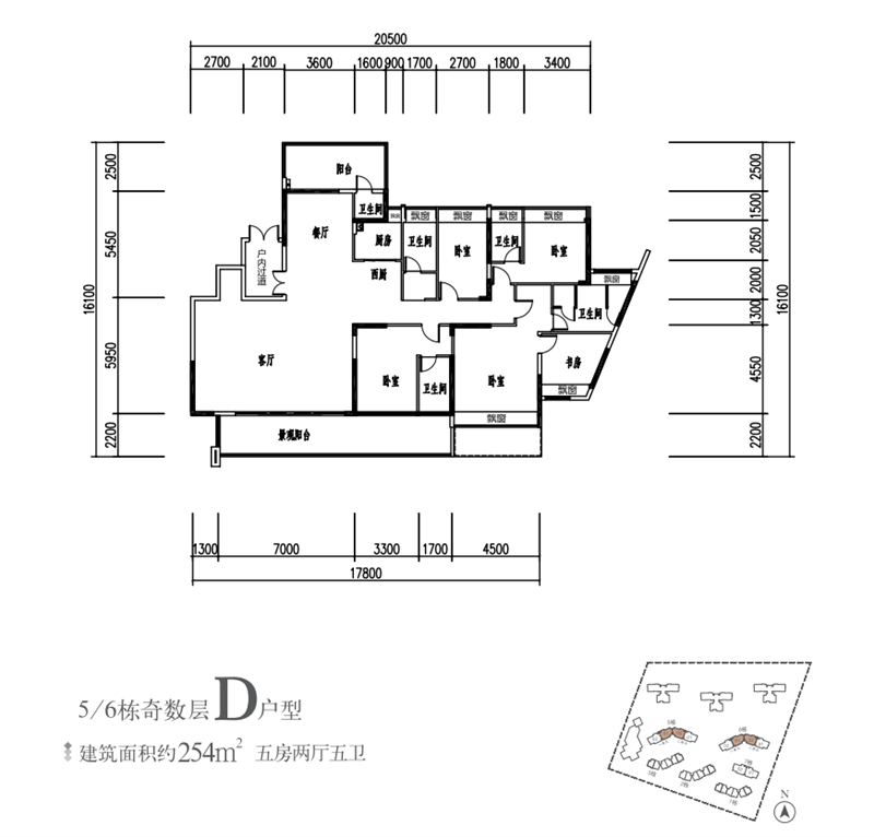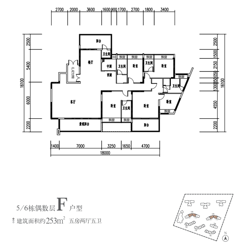 建面约254㎡ 5房2厅5卫