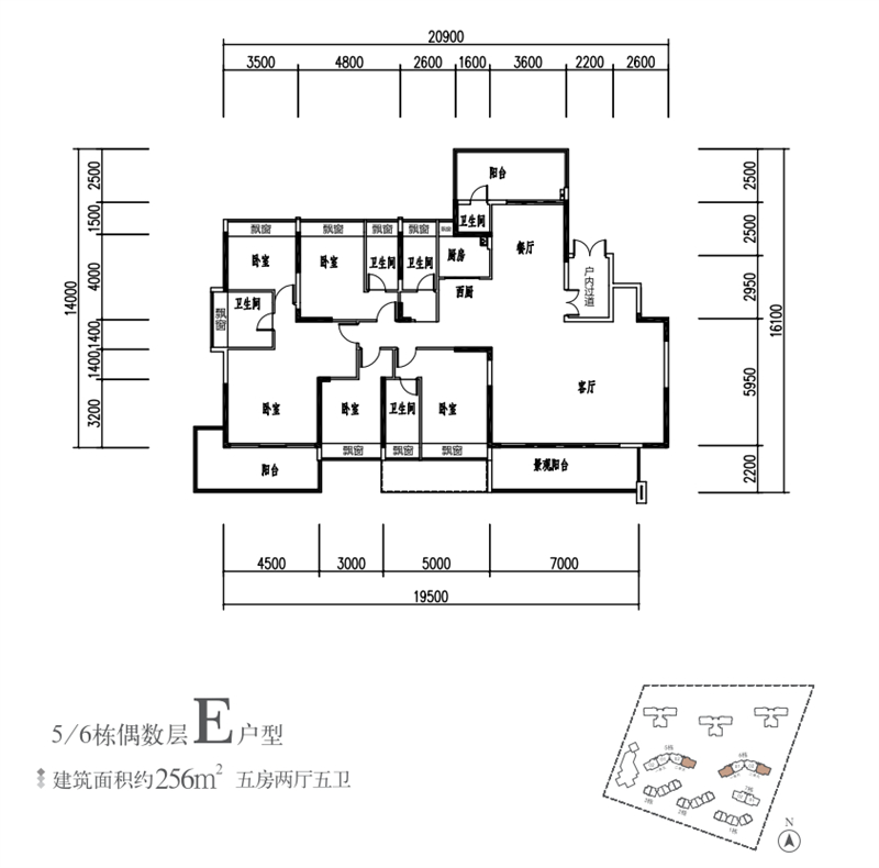建面约256㎡ 5房2厅5卫