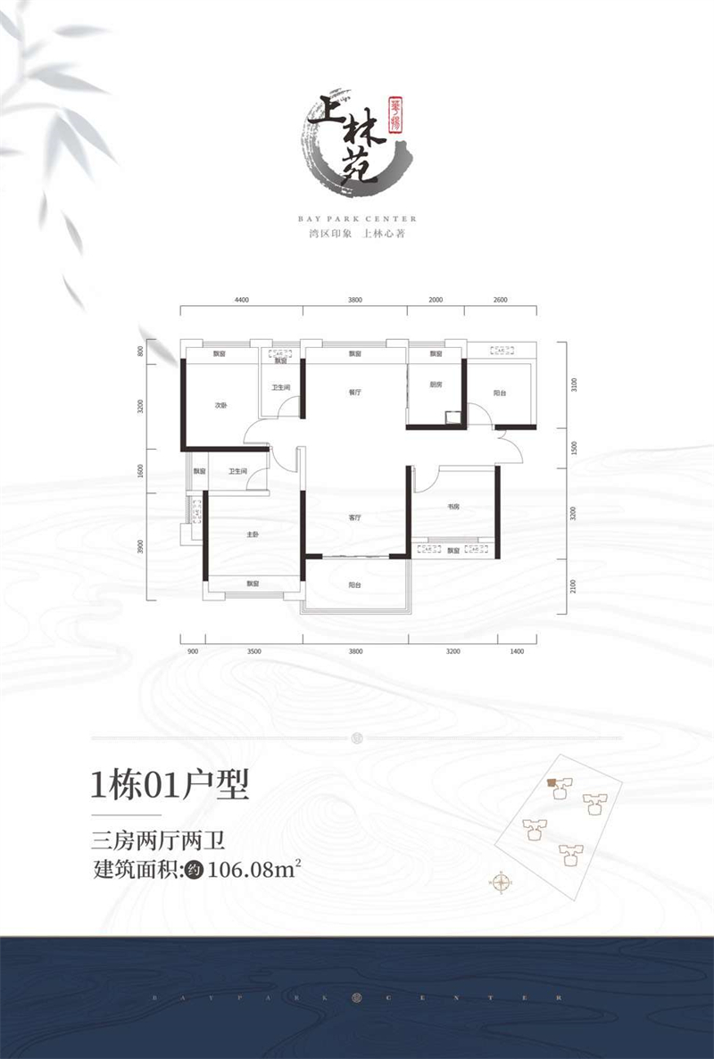 【项目户型】1栋 (1栋户型)106.08平 南北通(4房2厅2卫)