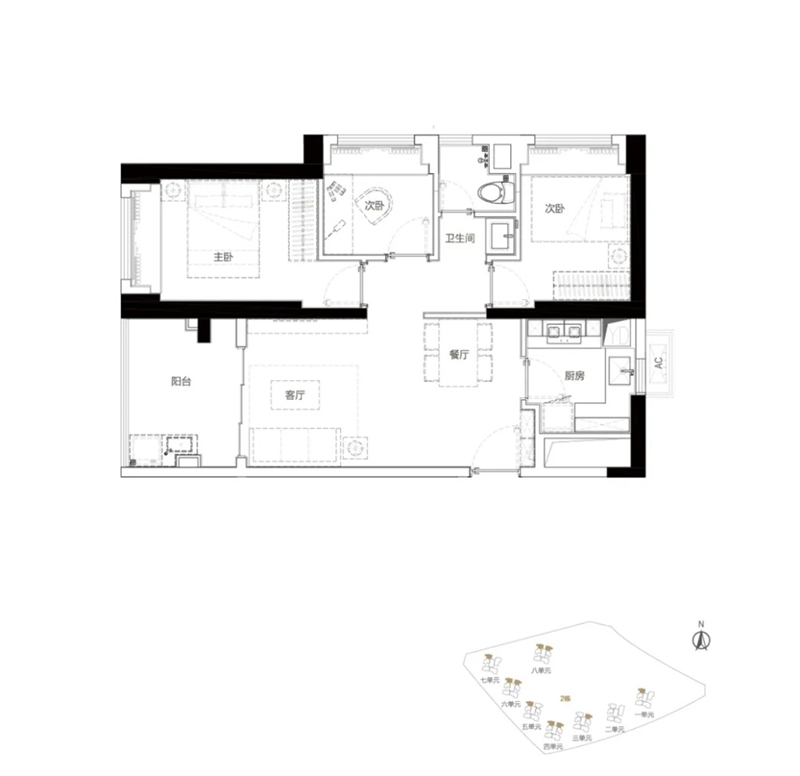 精致户型: 建面约65-67㎡ 2房2厅1卫