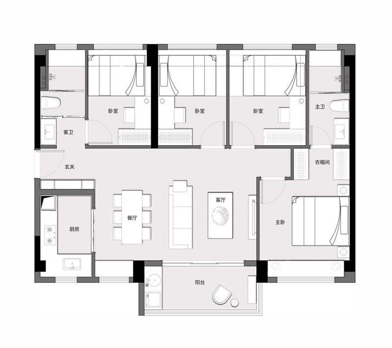 D户型建面约113㎡四房两厅两卫