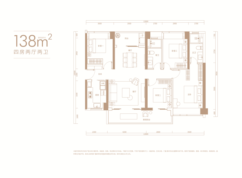 建面约138㎡四房两厅两卫