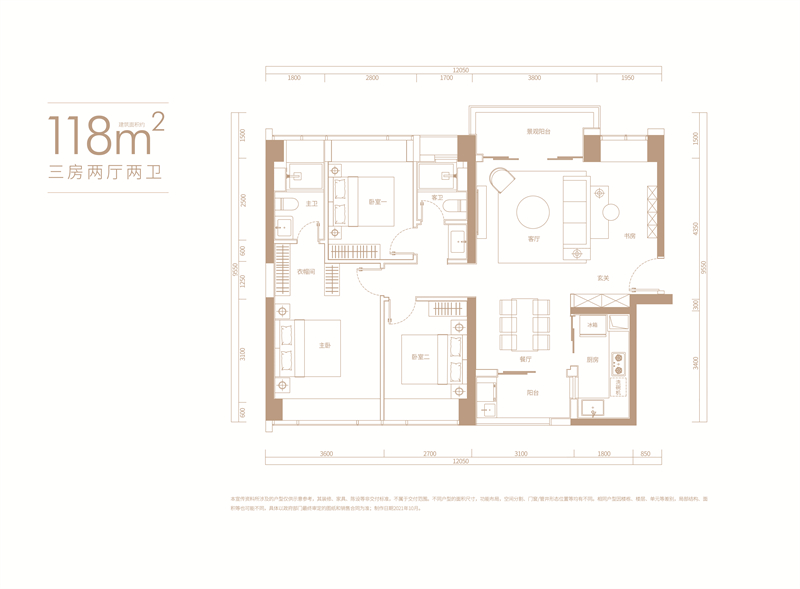 建面约118㎡三房两厅两卫
