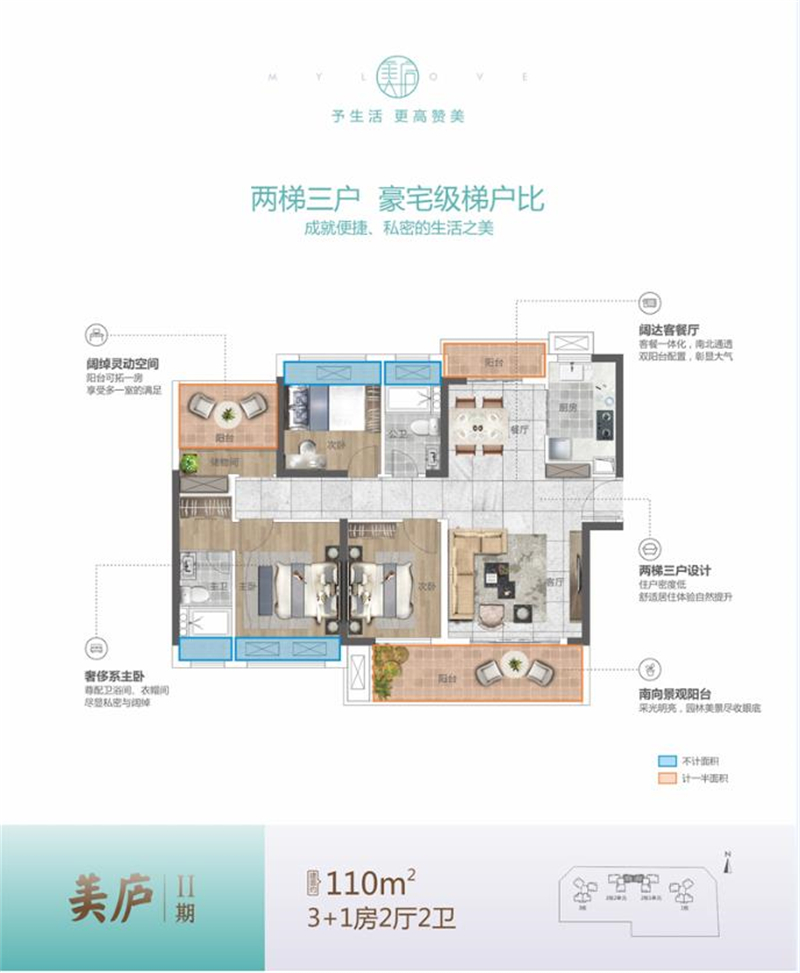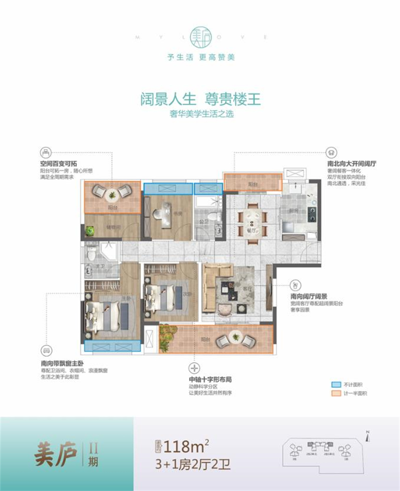 两梯3户95—118㎡N+1高拓超实用户型:95㎡2+1房两厅两卫南向宽景三房;108㎡3+1房两厅两卫南北通透;118㎡3+1房两厅两卫改善住房优选;项目户型均好性强,极容易成交。
