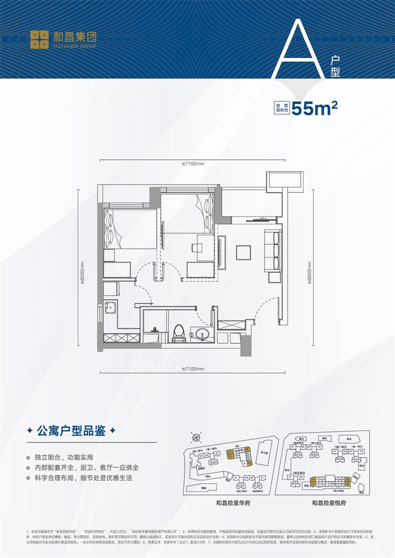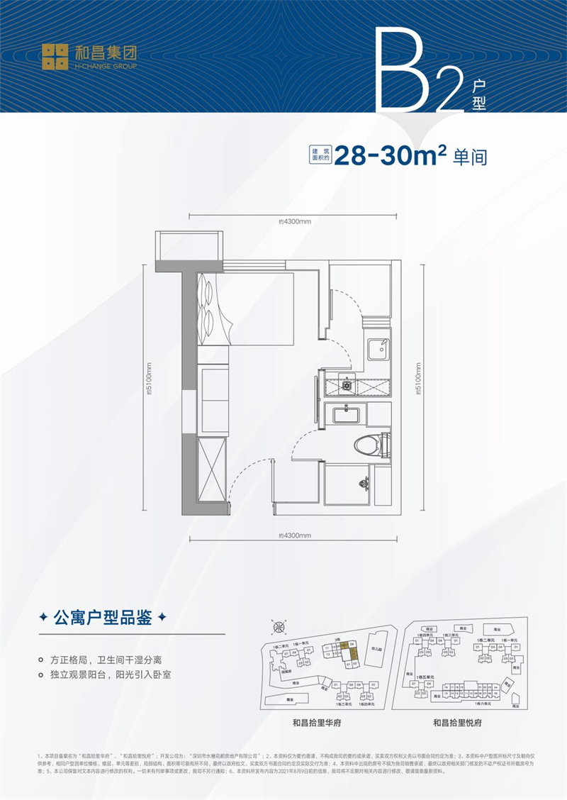 主力户型:公寓建面约28-30㎡单房,55㎡精研空间