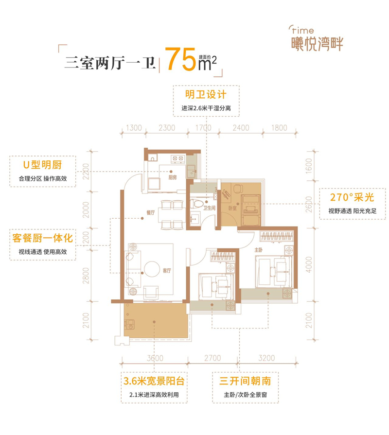 • 卓洲曦悦湾畔 7 5 平米-3房2厅1卫-75.00㎡