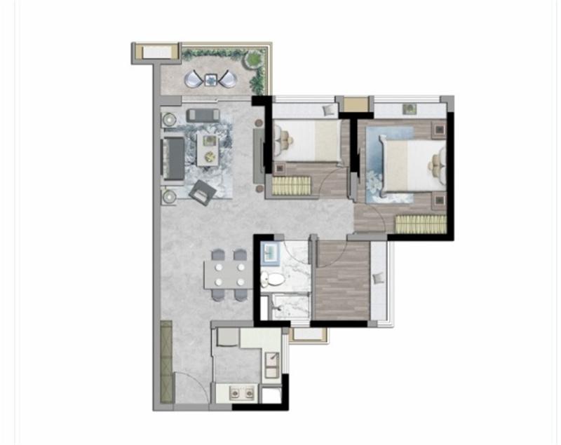 • 居室: 2室2厅1卫1厨